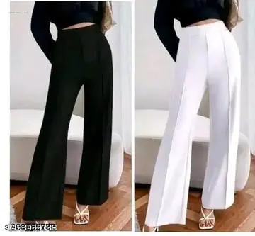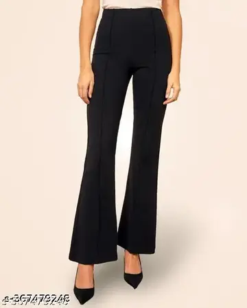 Casual Polyester Blend High Waist Elastic Band Black Stylish Trouser