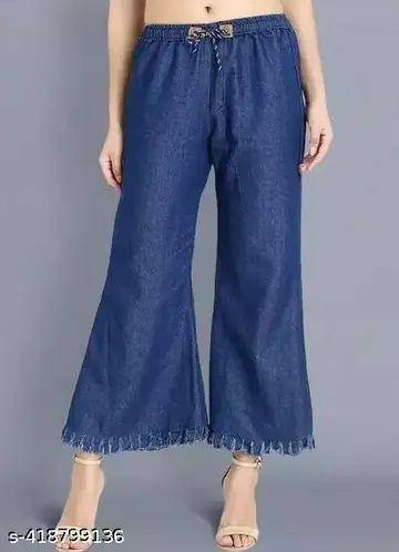 Designer Modern Women Denim Jogger Palazzo (Ruffles Jeans)